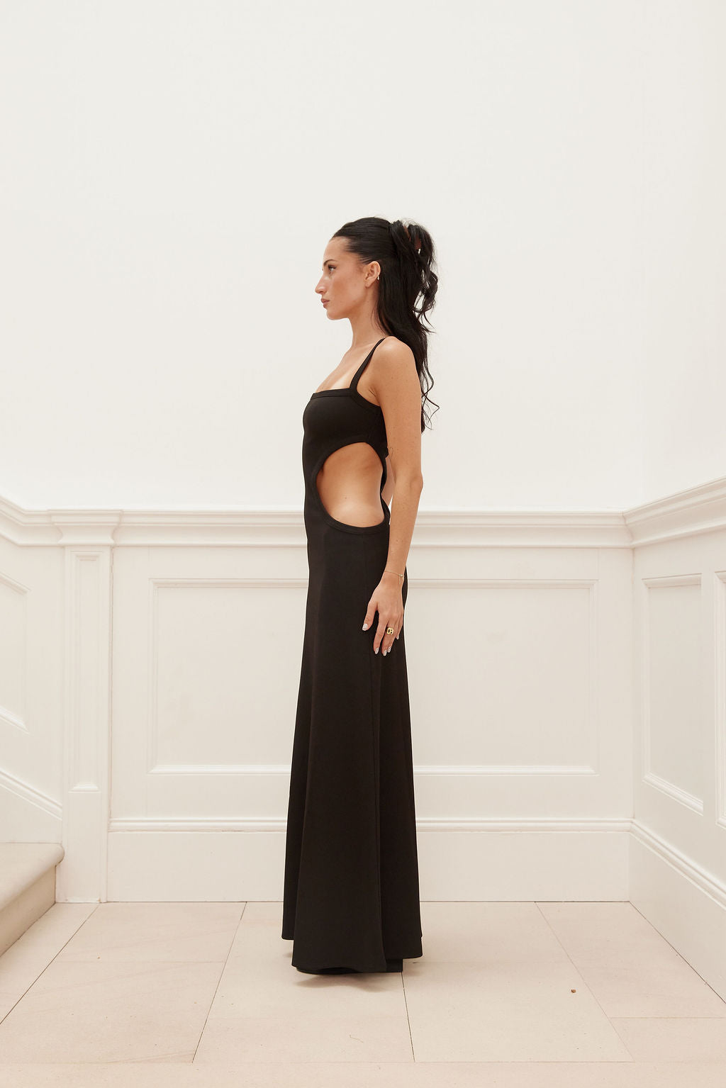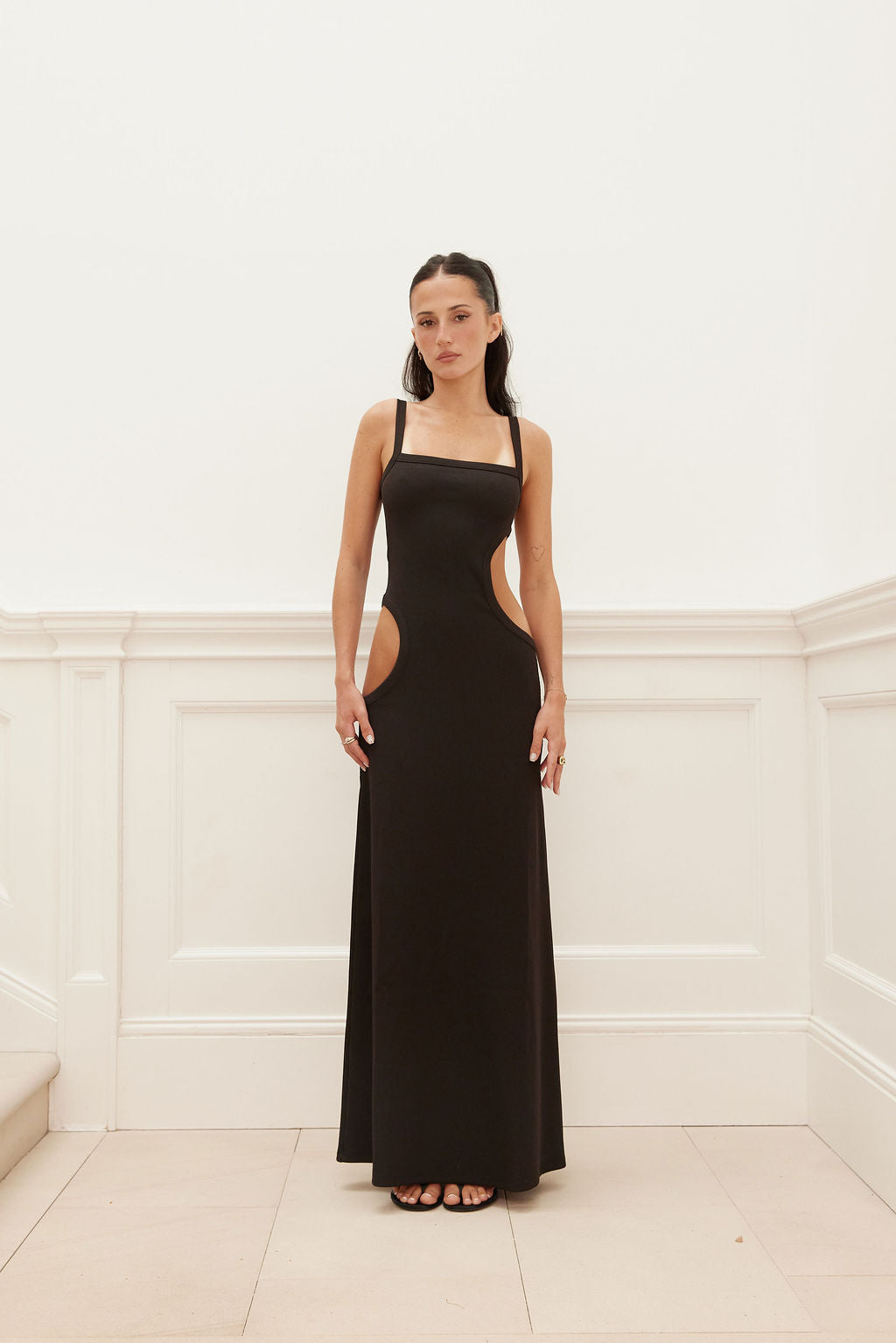 Our Side Panel Cut Out Maxi Dress is a sleek and timeless statement dress that transitions effortlessly from day to night. Its delicate, form sitting silhouette paired with its sexy cut outs on both side panels is the perfect dress for evoking that classy look with a 90s touch. It is cut from a heavy weight ribbed jersey fabric.