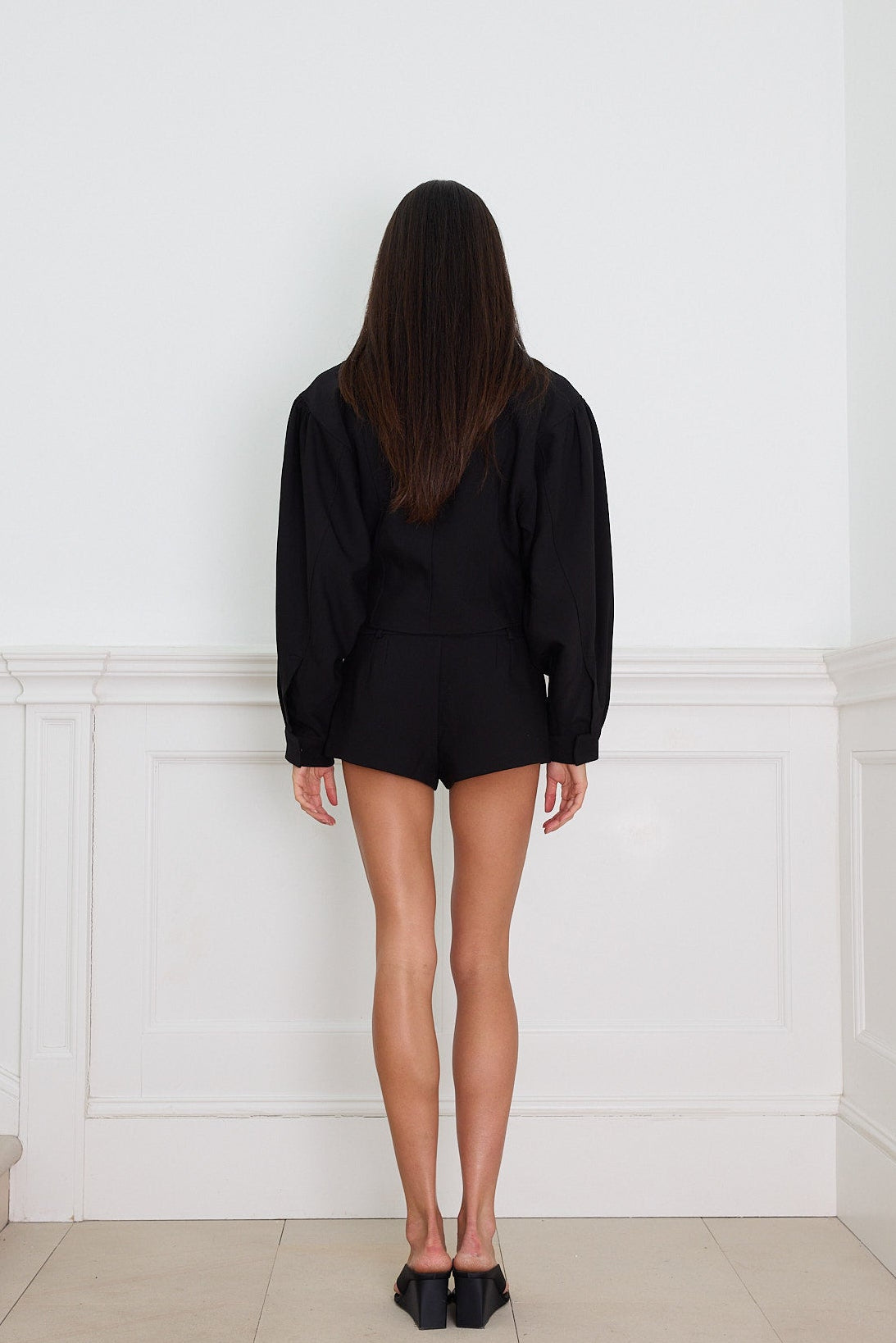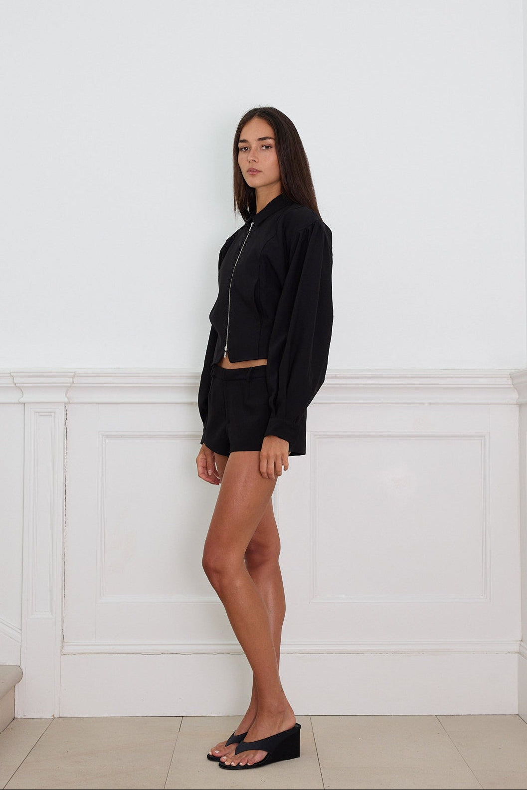 Our Cropped Bomber Jacket is a versatile yet classic jacket. Featuring exaggerated puff sleeves and a sleek tailored silhouette with a front zip, easily transitioned from day to night. The silhouette creates a flattering shape cinching around the waist with a sculpted hem allowing you to show a bit of skin or zip it up for the colder months.